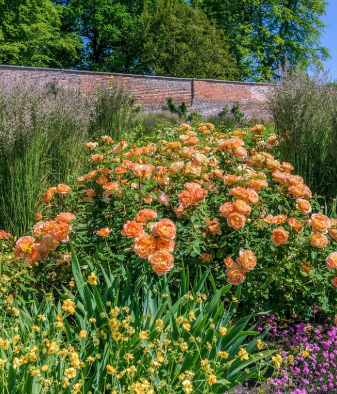 Роза парковая «Леди из Шалотт» идеально подходит для создания живых изгородей, украшения садовых дорожек и аллей.