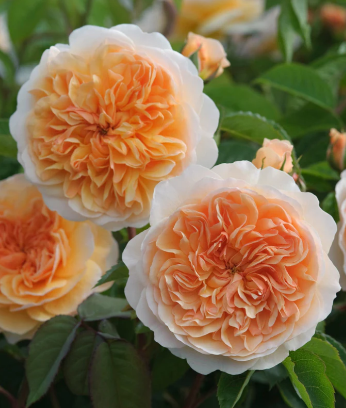 Роза парковая «Порт Санлайт» — это великолепный сорт, который поражает своей красотой и изяществом. Её цветки имеют нежный абрикосовый оттенок, который постепенно переходит в светло-розовый цвет. Они собраны в аккуратные чашевидные розетки и имеют диаметр около 8–10 см. Внешние лепестки со временем отгибаются вниз, создавая эффект воздушности.