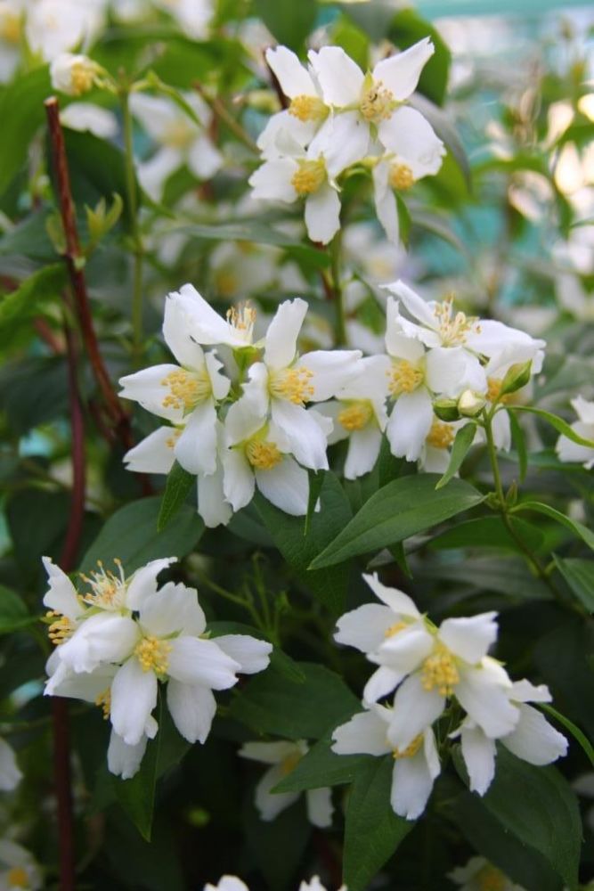 Чубушник (жасмин) мелколистный, также известный как Земляничный, представляет собой декоративный куст, достигающий в высоту не более полутора метров. Этот кустарник отличается компактностью, его прямые побеги склонны наклоняться в период цветения. Разновидность эта малотребовательна к почвам и предпочитает солнечные места, хотя может расти и в полутени, правда, в таком случае цветение будет менее обильным. Чубушник устойчив к заболеваниям и вредителям, при соблюдении обычных профилактических мер хорошо выдерживает кратковременные засухи и обладает высокой зимостойкостью. В суровые, бесснежные зимы ему может понадобиться укрытие, что не сложно организовать благодаря его компактным размерам. Листья у данного кустарника маленькие и заостренные, длиной около двух сантиметров. Цветение начинается на 3-4-й год жизни, продолжается с середины июня до начала июля. Чубушник радует небольшими (до 2 см в диаметре) белыми цветками без махровости, которые могут располагаться как поодиночке, так и собираясь в небольшие группы. Однако наиболее ценится этот сорт за свой неописуемый приятный аромат, напоминающий земляничный с едва уловимыми ананасовыми нотками.