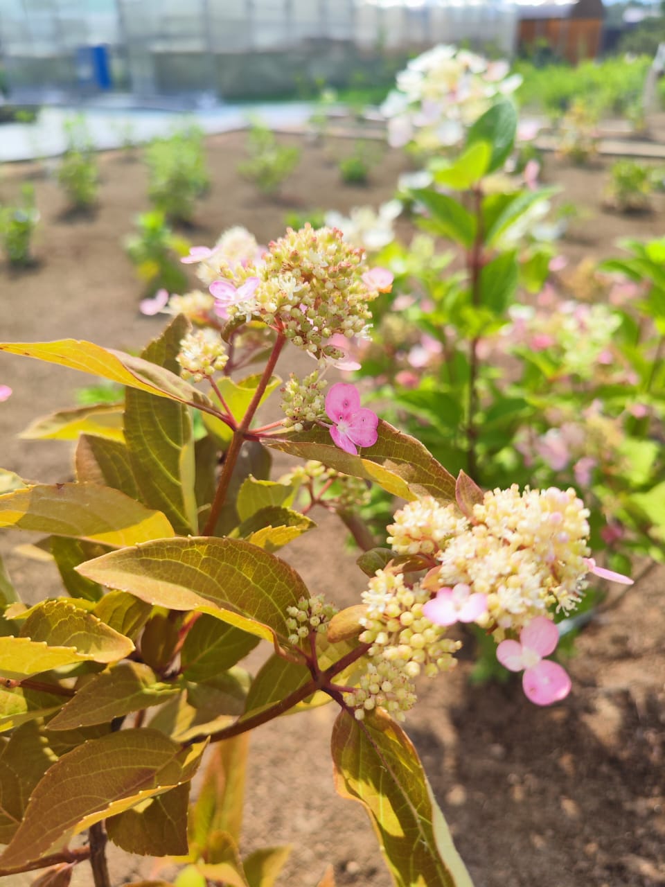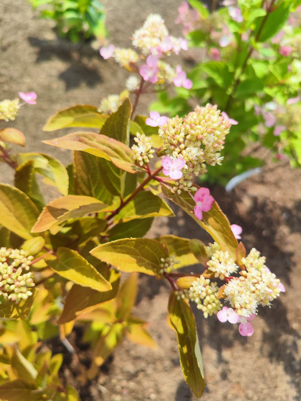 Гортензия метельчатая Эрли Гарри представляет собой компактный, прямостоячий куст с прочными ветвями, которые легко выдерживают вес массивных соцветий. Молодые травянистые побеги ярко-пурпурные, а прошлогодние, одеревеневшие, приобретают серо-коричневый оттенок. Ветки покрыты ярко-зелеными листочками, овально-заостренными с мелкими зубчиками по краю. Осенью лист меняет цвет с зеленого на лимонно-медный, создавая выразительные акценты в саду. Соцветия округло-конусовидные, довольно крупные и широкие. Они состоят из множества мелких плоских фертильных цветков и больших, четырехлепестковых цветков на длинных ножках, преимущественно белого цвета. В течение сезона палитра меняется на более насыщенные розовые и розово-фиолетовые оттенки. Сорт Эрли Гарри ценится за свою декоративность в течение всего года, легкость размножения отводками, черенками и семенами, обладающими хорошей всхожестью. Помимо этих качеств, растение отличается крепким иммунитетом, непритязательностью в уходе, устойчивостью к плохой погоде, а также засухо- и морозостойкостью. Он хорошо растет в условиях легкой затененности. Недостатки включают высокие требования к кислотно-щелочному балансу и необходимость укрытия молодых растений в умеренных климатических зонах. Хотя растение заявлено с крепким иммунитетом, при длительной влажной погоде оно подвержено хлорозу, мучнистой росе, септориозу и ржавчине, от которых можно обработать фунгицидами. Этот сорт подходит как для тёплых регионов, так и для умеренного климата средней полосы. Гортензия цветет в начале сезона - первые бутоны появляются в конце мая и сохраняются до конца лета, иногда до середины сентября. Она широко используется в декоративном озеленении около жилых и административных зданий, а также в парках и садах. Растение хорошо подходит для групповых и одиночных посадок и живых изгородей, легко сочетается с разными растениями, такими как бегонии, пионы, люпины, ирисы и тюльпаны, а также с баданом, нарциссом, примулой, декоративными злаками и хвойными древесными растениями.