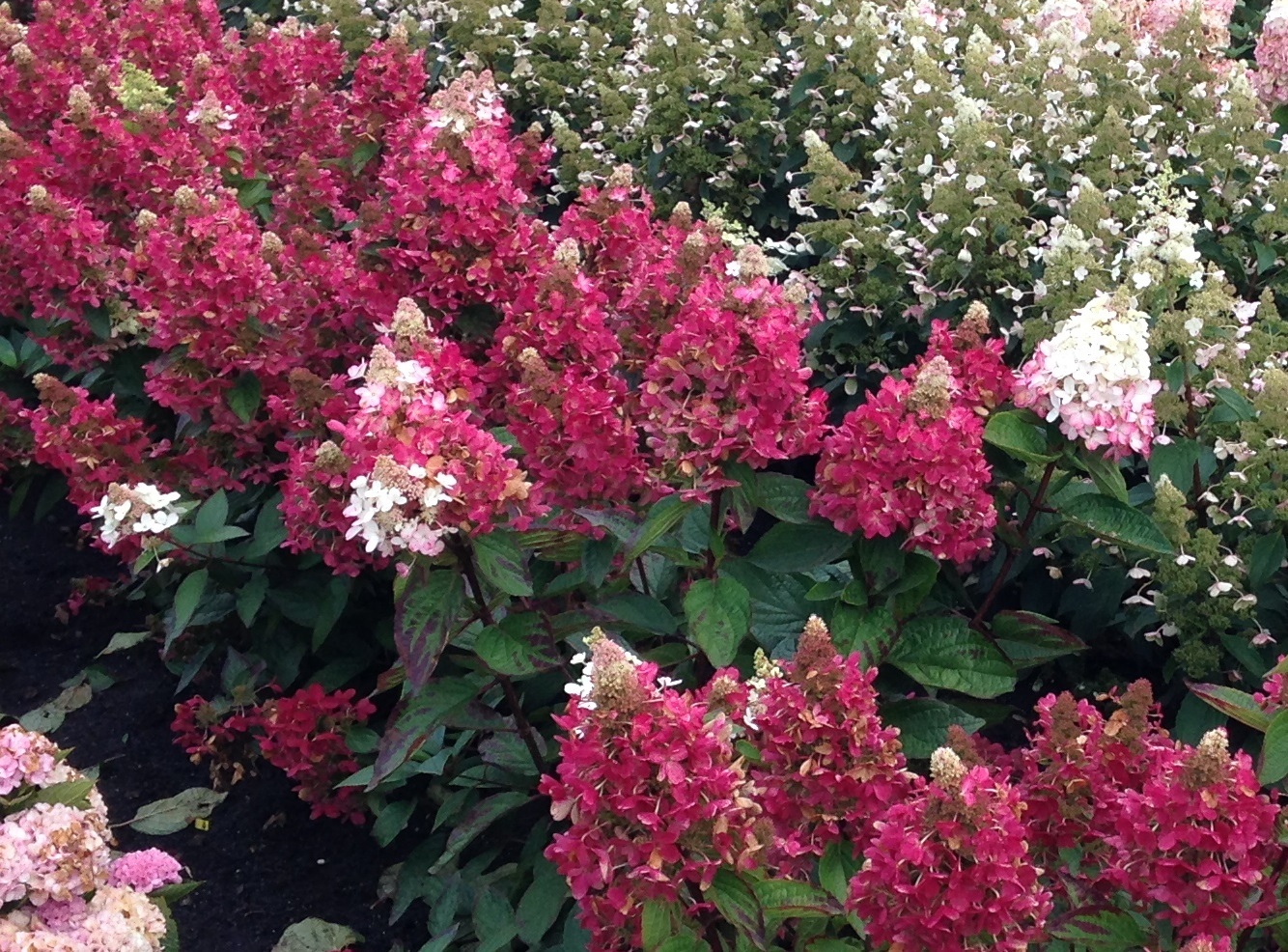 Гортензия метельчатая Меджикал Везувий – сорт с обильным цветением и компактными размерами куста. Высота растения может достигать 100-130 см, при этом диаметр кустарника составляет в среднем 100-150 см. Цветки крупные, собранные в плотные, высокие соцветия пирамидальной формы. В самом начале бутонизации их лепестки окрашены в белый и светло-розовый цвета. Ближе к концу цветения они наливаются насыщенным розовым оттенком с примесью красного. Побеги гортензии имеют красно-коричневый окрас. По своей структуре они довольно жесткие, поэтому подвязывать куст не нужно. Листья сорта Меджикал Везувий яйцевидной формы. Окрас листовой пластины темно-зеленый. Период цветения продолжается с конца июня до конца августа или начала сентября.