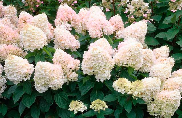 Гортензия метельчатая Свит Саммер – компактный сорт метельчатой гортензии, имеющей плотный куст высотой не более 1,5 м с густой шаровидной кроной. Соцветия собраны в крупные, плотные, широконические метелки. Цветет обильно и продолжительно: с июля почти до конца сентября, не теряет декоративности осенью. Состоит сплошь из стерильных цветков, которые при роспуске имеют желтовато-зеленоватые оттенки, затем бело-кремовые, а к концу цветения становятся чистых, насыщенно розовых тонов. Сорт устойчив к обрезке, хорошо формируется. Показывает высокую зимо- и морозоустойчивость. Любит солнечные участки, но прекрасно адаптируется и в полутени. Великолепен в качестве одиночного растения на газоне, хорошо смотрится в композициях и в цветниках. Гортензия метельчатая Свит Саммер требовательна к наличию влаги в почве. Предпочитает плодородные, рыхлые, кислые почвы. Не выносит извести в почве.