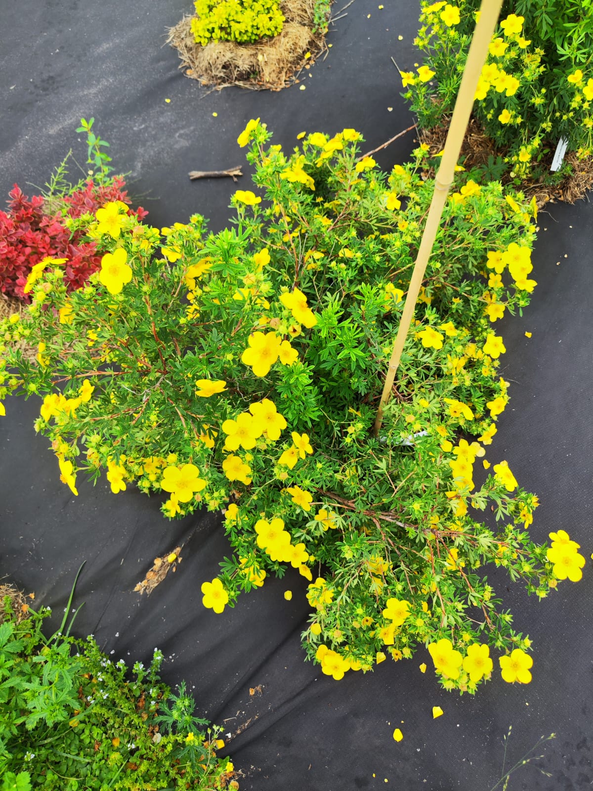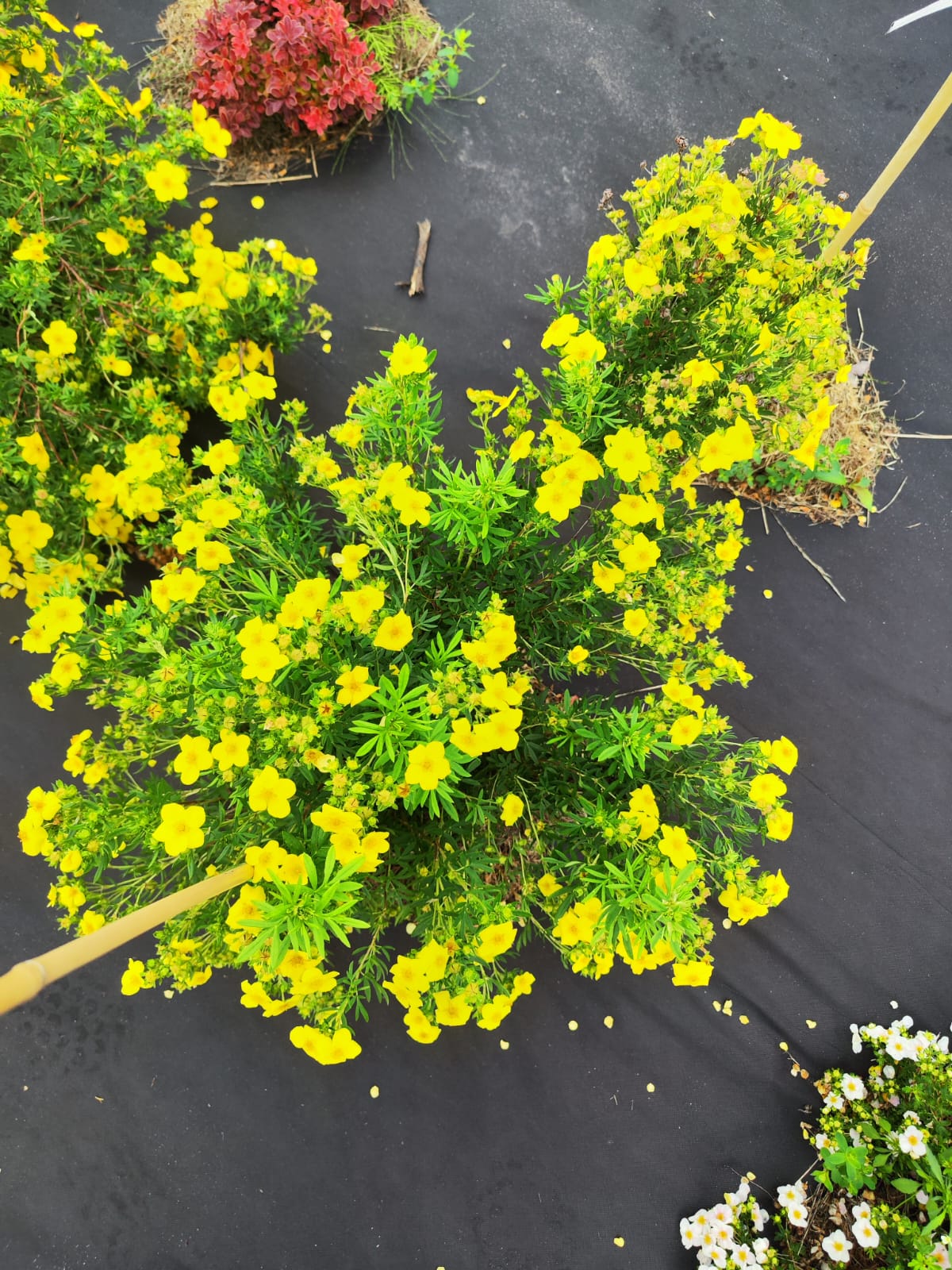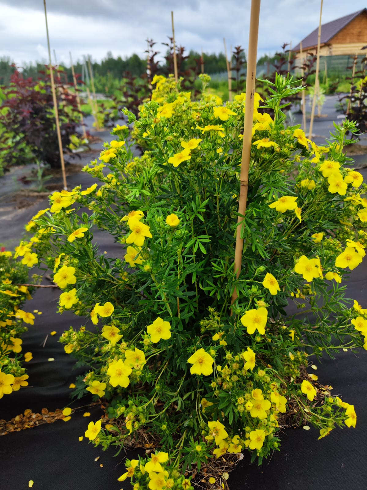 Лапчатка кустарниковая желтая - сорт лапчатки кустарниковой с желтыми цветками, используемый для создания живых изгородей и миксбордеров. Неприхотлив в уходе, переносит морозы и засуху.