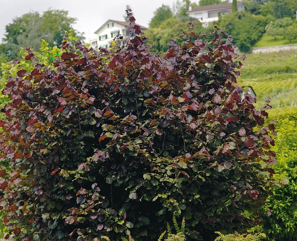 Лещина обыкновенная Пурпуреа рекомендуется для одиночных и групповых посадок в садах, парках, для украшения парадных мест.
