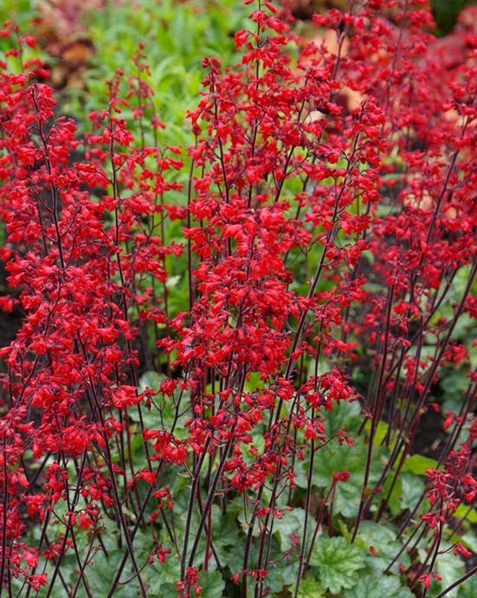 Особое внимание заслуживает сорт Гейхеры кроваво-красной Руби Беллз. Он отличается зелеными листьями и яркими, чисто-красными цветками.
