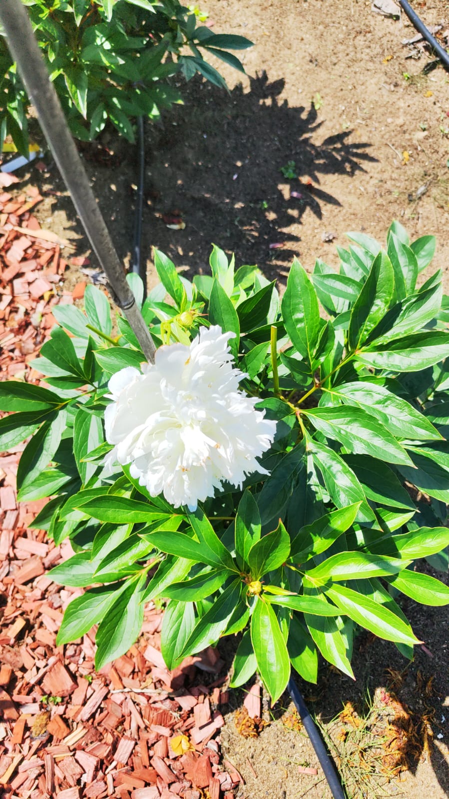 Куст пиона Гардения достигает высоты до 80 см и имеет прочные стебли, которые не требуют подвязки.