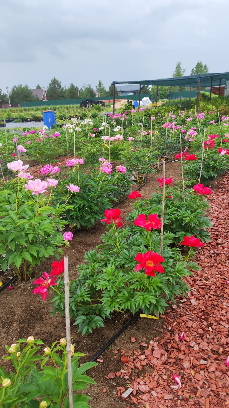 Куст пиона «Чёрный жемчуг» компактный, высотой до 80 см.