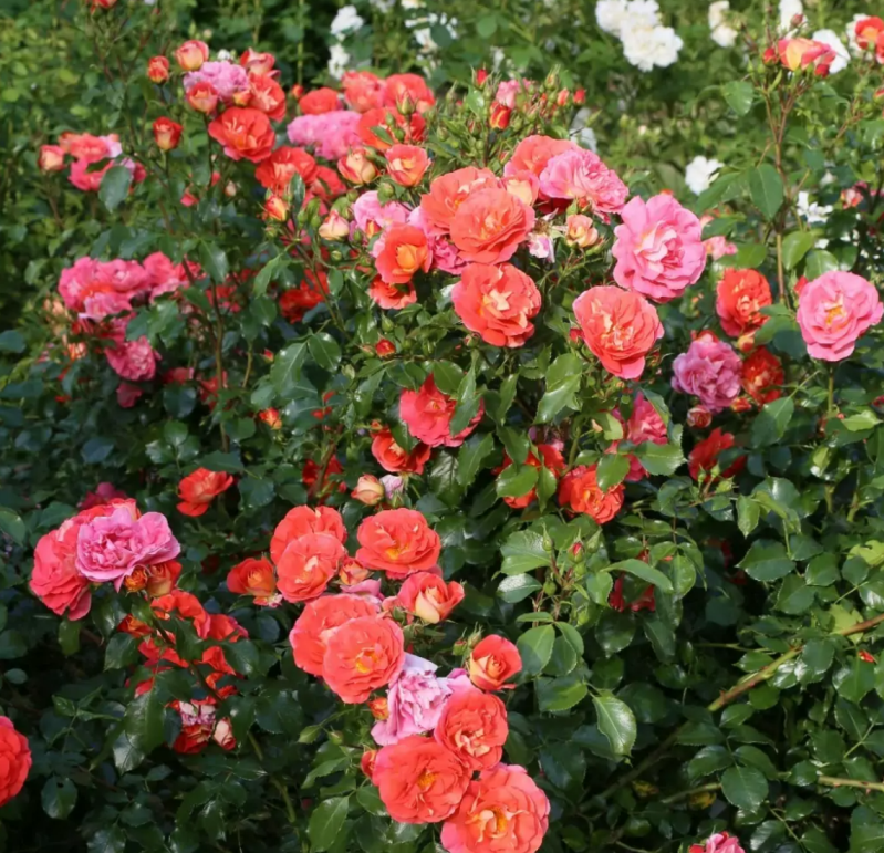 Роза флорибунда “Братья Гримм” - это сорт, характеризующийся пышным цветением и классической формой бутонов. Бутоны имеют диаметр около 12 см и меняют свой окрас от кораллово-оранжевого до малиново-розового, что делает их уникальными и привлекательными. Куст розы “Братья Гримм” достигает высоты 90 см и имеет ширину не более 50 см, что делает его компактным и аккуратным. Ветви крепкие, с густыми темно-зелеными листьями с блестящей глянцевой поверхностью.