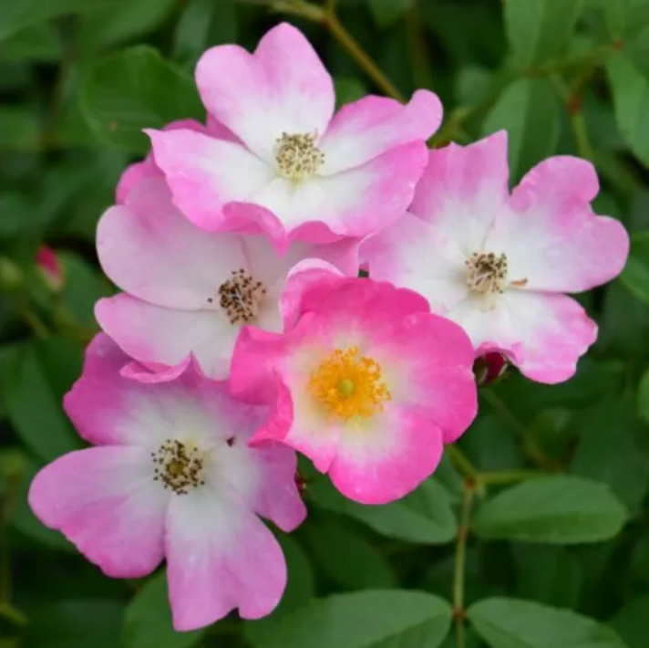 Цветки розы Баллерина имеют нежный розовый цвет с белым центром. Они небольшие, диаметром около 3–5 см, и полумахровые. Аромат цветков лёгкий, сладковатый.