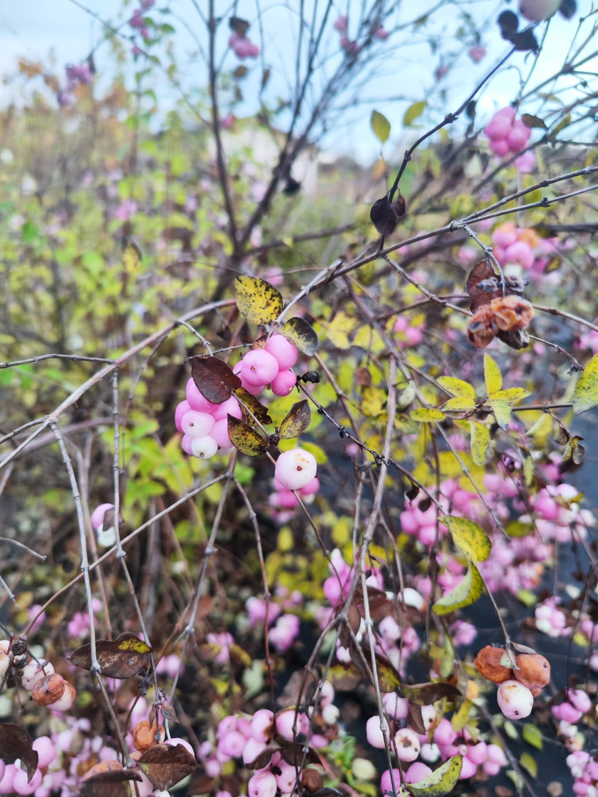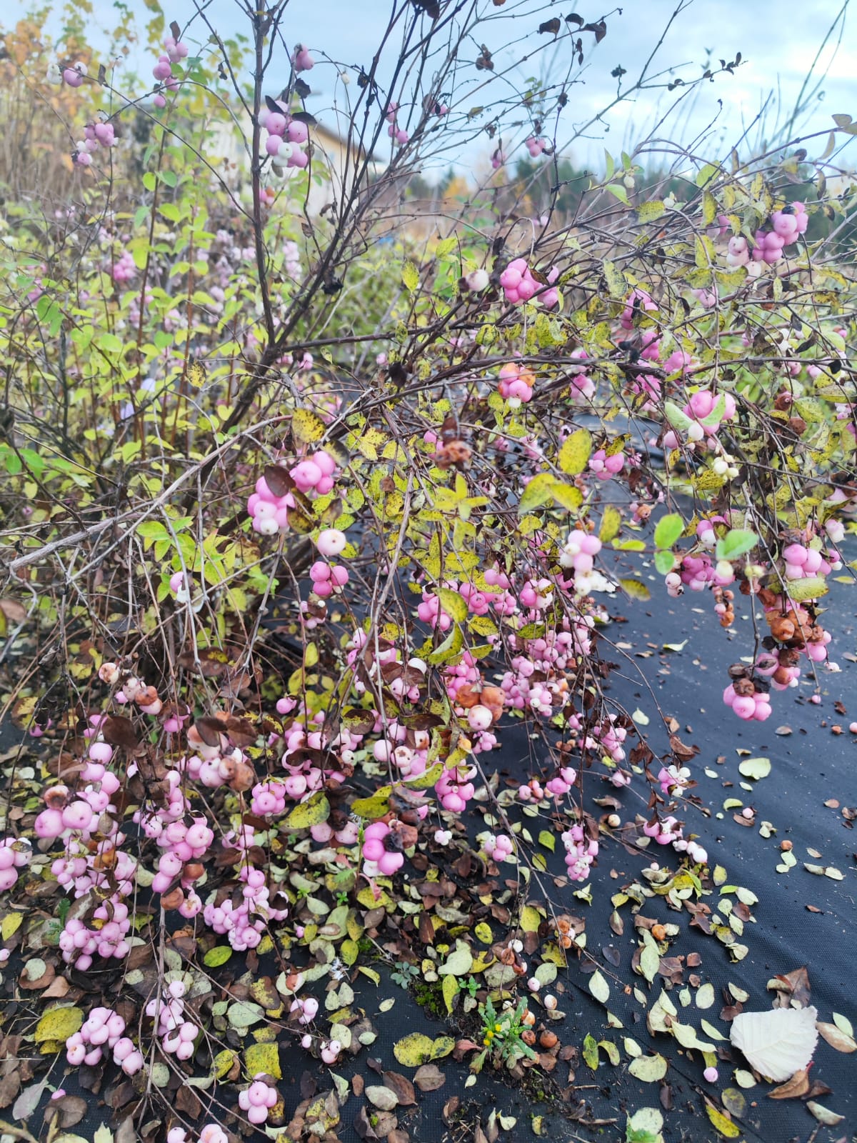 Плоды сохраняются на ветвях до морозов, создавая эффект заснеженного куста.