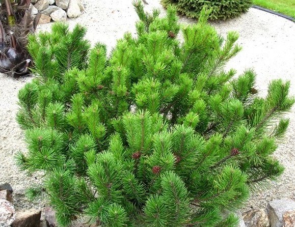 Сосна горная карликовая (Pinus mugo Pumilio) — это небольшой хвойный кустарник с яйцевидной кроной. Он идеально подходит для создания живых изгородей, оформления альпийских горок и каменистых садов.